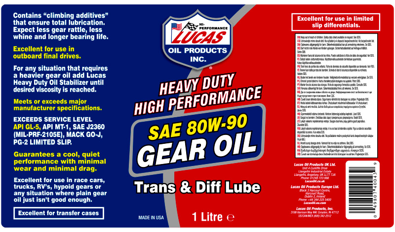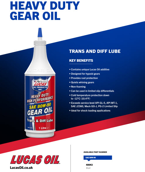 Getriebeöle müssen seit Jahren verbessert werden, insbesondere in der Hochleistungsindustrie. Das Lucas 80W-90 profitiert von der Technologie, die Lucas entwickelt hat, um den "Lucas Heavy-Duty Oil Stabilizer" zu machen, das führende Ergänzungsöl in der Heavy-Duty-Industrie. Diese Getriebeölformel ist mit speziellen Anti-Verschleiß-und Schmiermitteln zur Kontrolle von Verschleiß und Widerstand sowie speziellen Additiven zur Kontrolle der Hitze angereichert. Diese Merkmale sind bei gewöhnlichen Getriebeölen nicht zu finden. Dieses Getriebeöl ist sowohl für Rennwagen als auch für alle Heavy-Duty-Anwendungen hervorragend geeignet, bei denen einfache Getriebeöle einfach nicht gut genug sind. Merkmale und Vorteile. Enthält spezielle Anti-Verschleiß-und Schmiermittel Hilft die Hitze zu kontrollieren Hervorragend geeignet für Hochleistungs-und Heavy-Duty-Anwendungen |